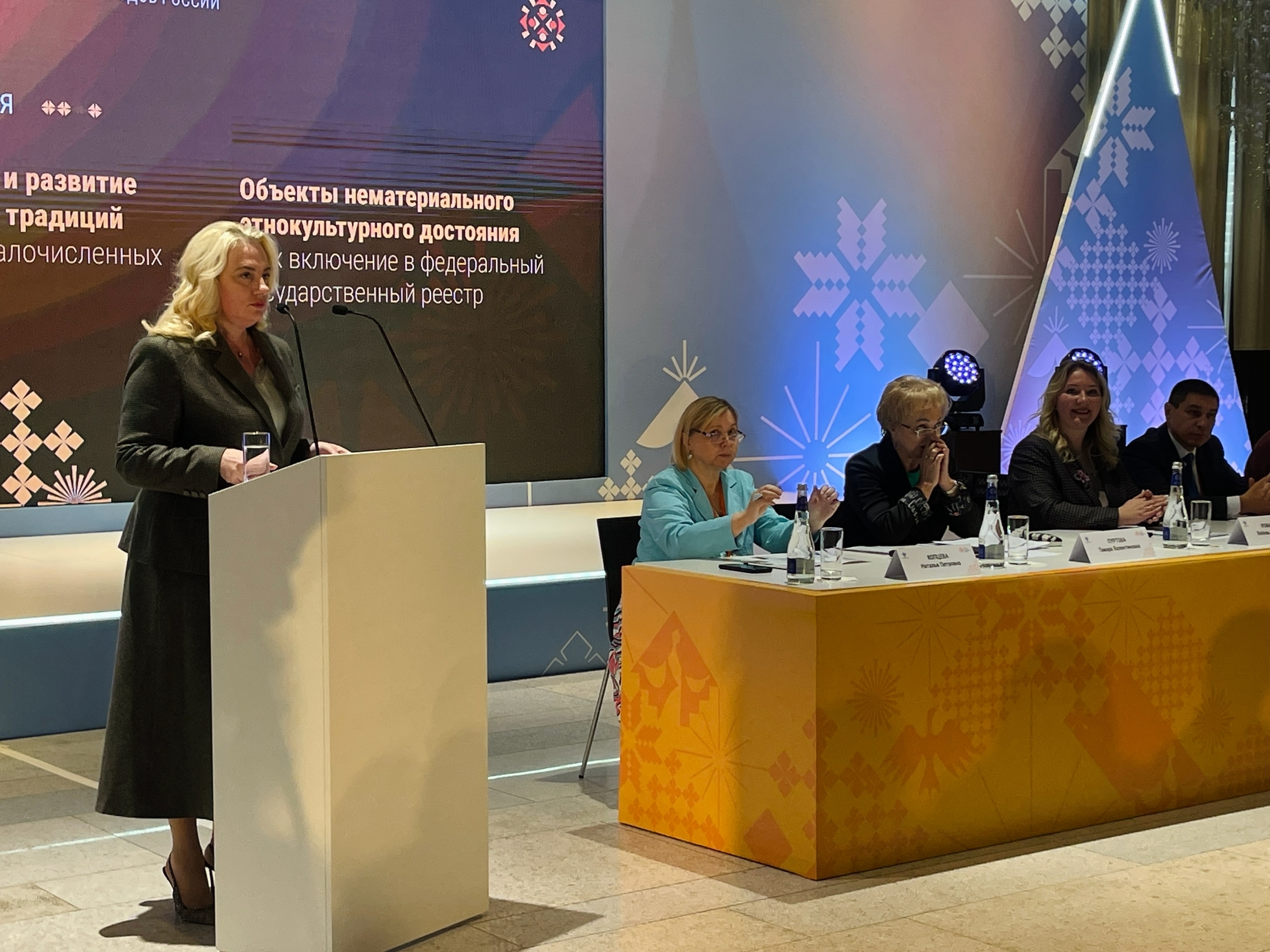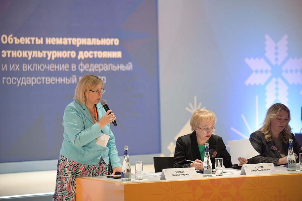 Директор ГРДНТ имени В.Д. Поленова Тамара Валентиновна Пуртова рассказала об истории создания реестра объектов нематериального этнокультурного достояния народов России, а также актуальных проектах, направленных на сохранение традиций.