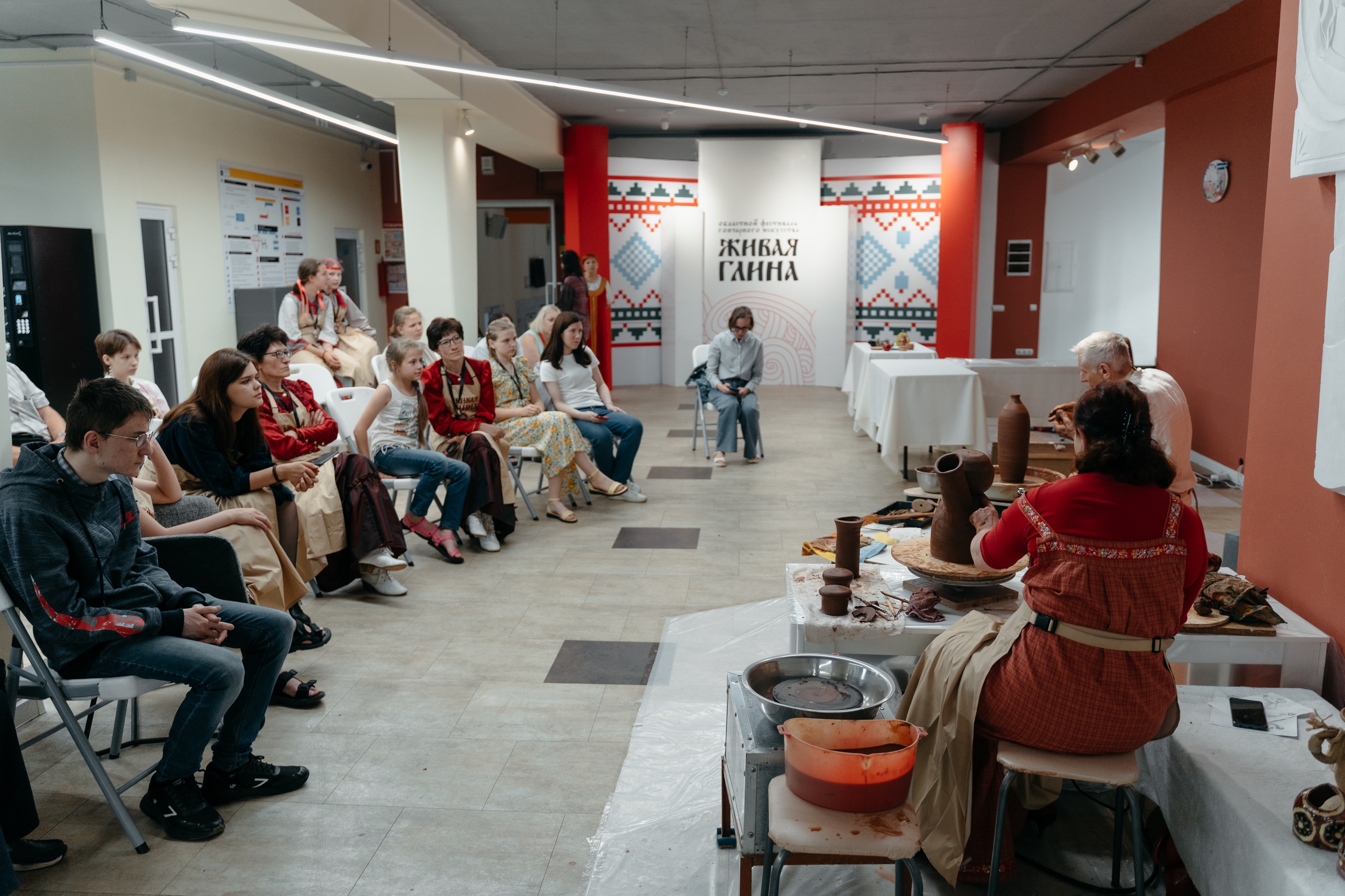 24 июня одним из самых зрелищных мастер-классов стало гончарное шоу народного мастера Алтайского края Михаила Бывши´х (г. Барнаул). Под открытым небом на глазах у зрителей известный керамист и его помощник - народный мастер России Алексей Золотов (г. Ярославль), создавали большую гончарную форму, собранную из 4-х ярусов. На уникальном изделии расписались участники «Живой глины».